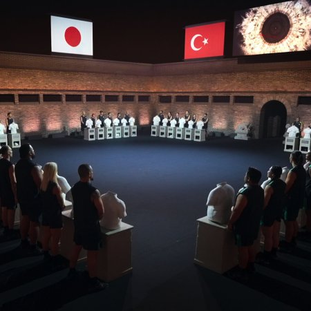 Forty-eight contestants from eight countries arrive, and the teams size each other up. At last, the curtain rises on the first quest. (Source: Netflix)