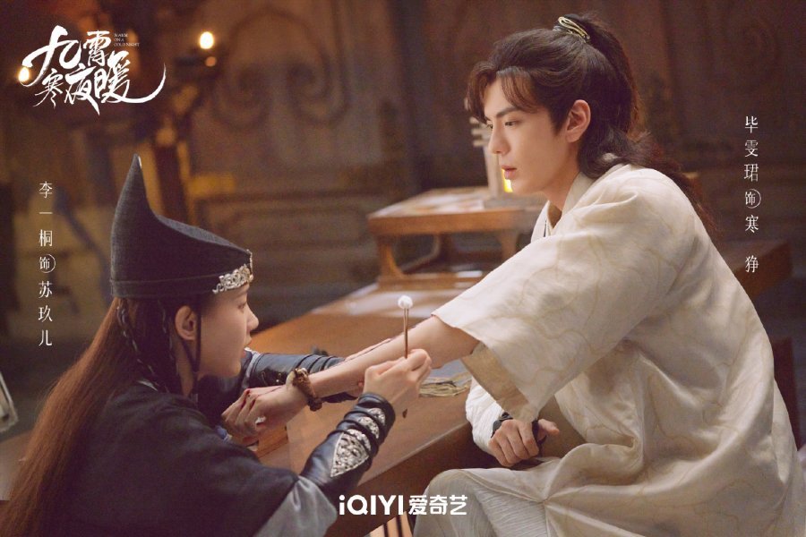 They pretended to be lovers and went to investigate at a wine shop, where they learned that the four dead officials of the Qian clan were all supporters of the Qi clan in the court. When Su Jiu'er secretly went to examine the corpse, she was caught by Han Zheng. He questioned her motives and believed she had a greater conspiracy, always wanting to touch him. Su Jiu'er revealed her illness and the truth about Han Zheng's ability to cure her, but he didn't believe her. They argued until Su Jiu'er had another attack, and Yue Daren suddenly appeared. Su Jiu'er asked Han Zheng to hide, but he didn't listen. In desperation, Su Jiu'er kissed Han Zheng, and he saw her eyes gradually become lively again.