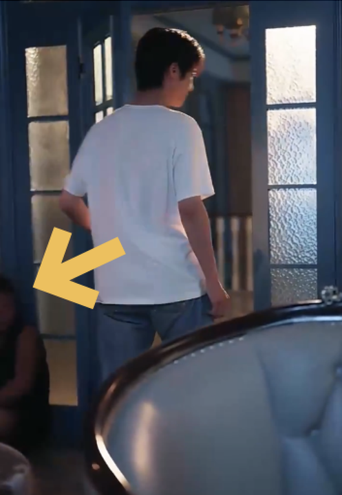 I don't notice small mistakes, but it was really hard to miss the guy sitting in the corner lol. The screenshot's a little blurry, but the actual video was clear.