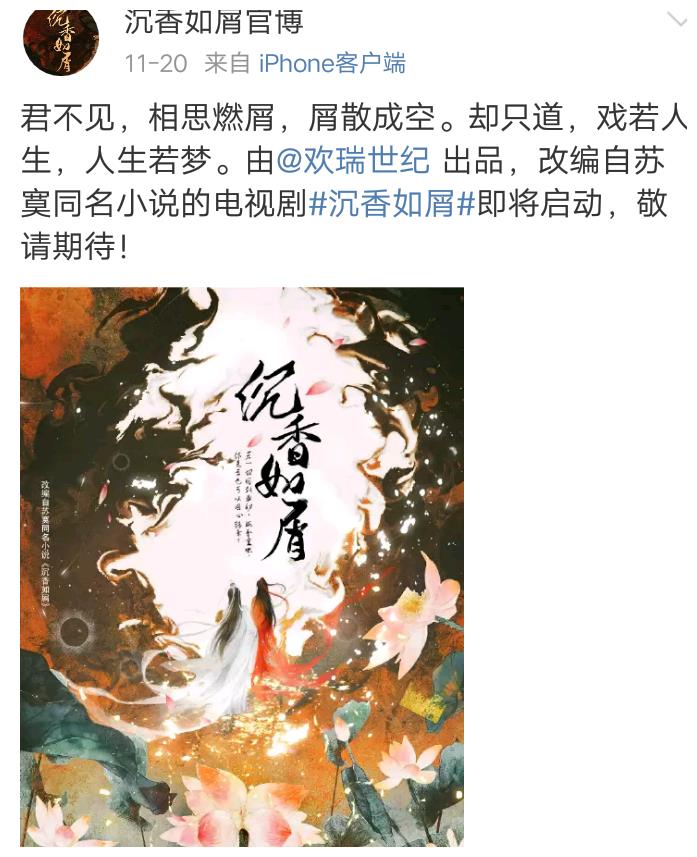 The popular novel "Agarwood like crumbs" is to be filmed and for television, and the novel's copyright has fallen to Huanrui. Huanrui has always liked to support its own artists with great IP TV series.