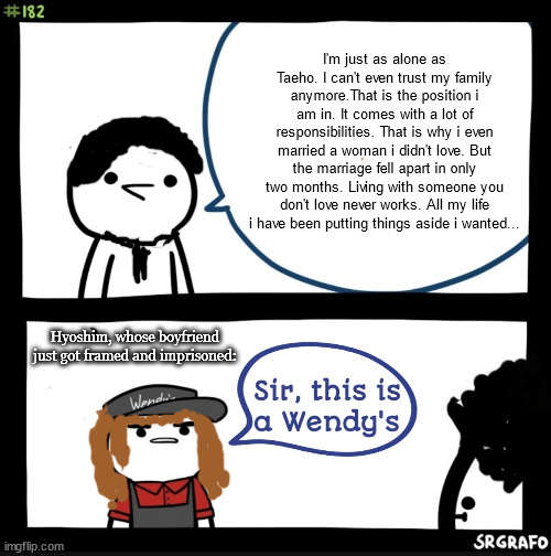 Also the way TM appears uninvited at Hyoshim's doorstep late at night like a stalker and then just starts monologuing his sob story at her for several minutes whether she wants to hear it or not, is just peak Taemin, gotta say π Made a meme regarding that: