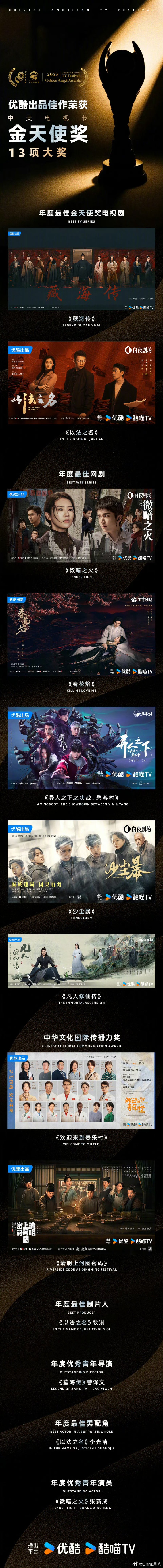 Congratulations! #Youku won 13 awards at the 2025 China-US Television Festival.# Shine β¨ on the world stage!